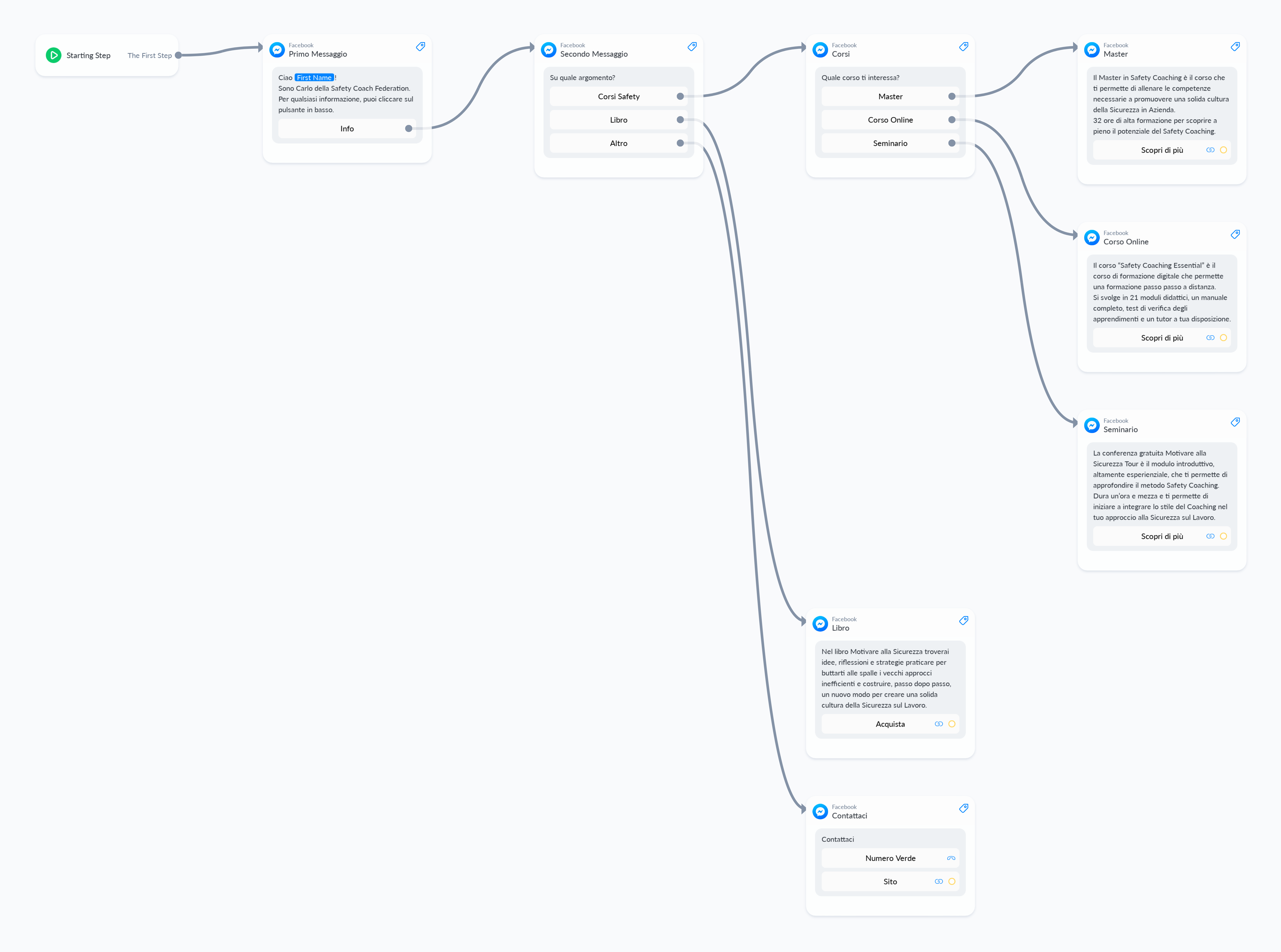 Configurazione di un chat bot tramite ManyChat per la pagina Facebook aziendale.