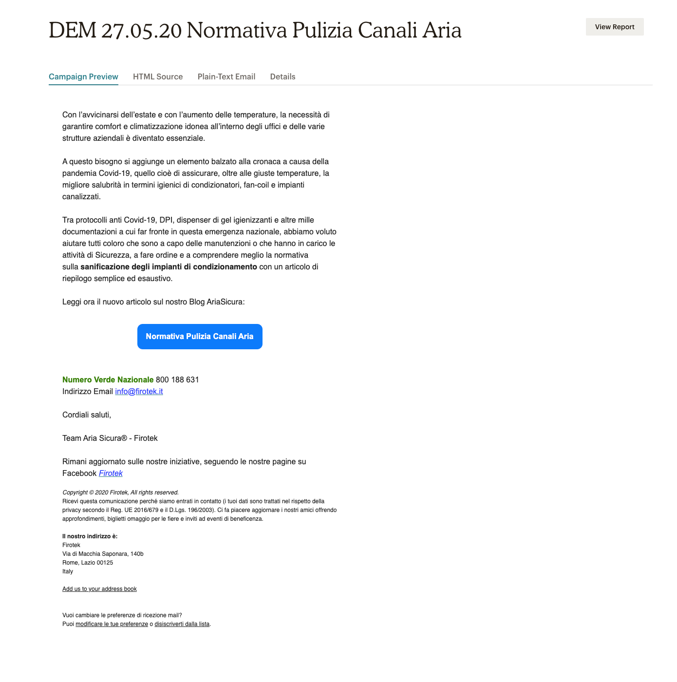 Invio di campagne direct email a un database di lead tramite MailChimp.